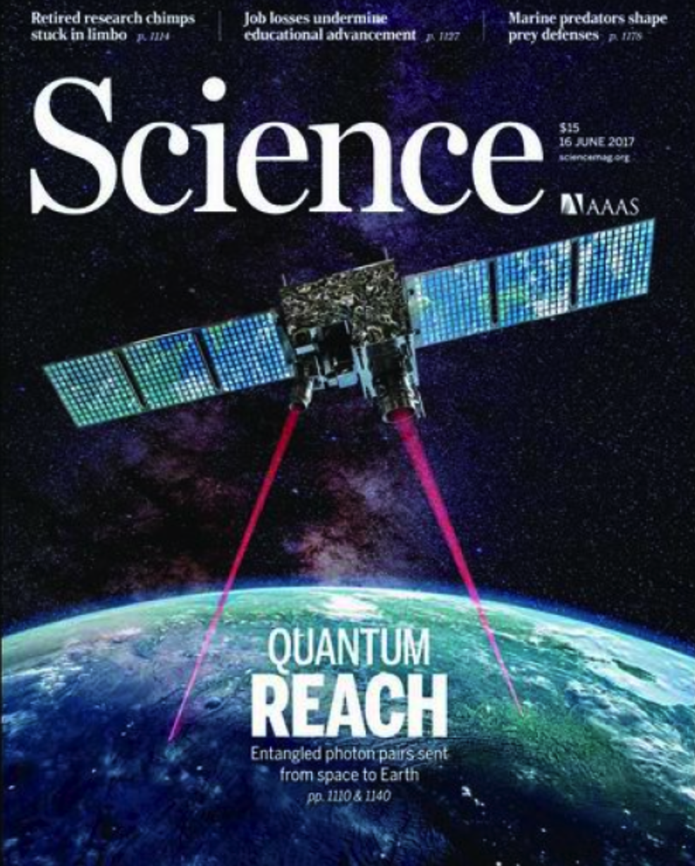 2017年6月16日,千公里級(jí)星地量子糾纏分發(fā)實(shí)驗(yàn)登上《科學(xué)》封面。