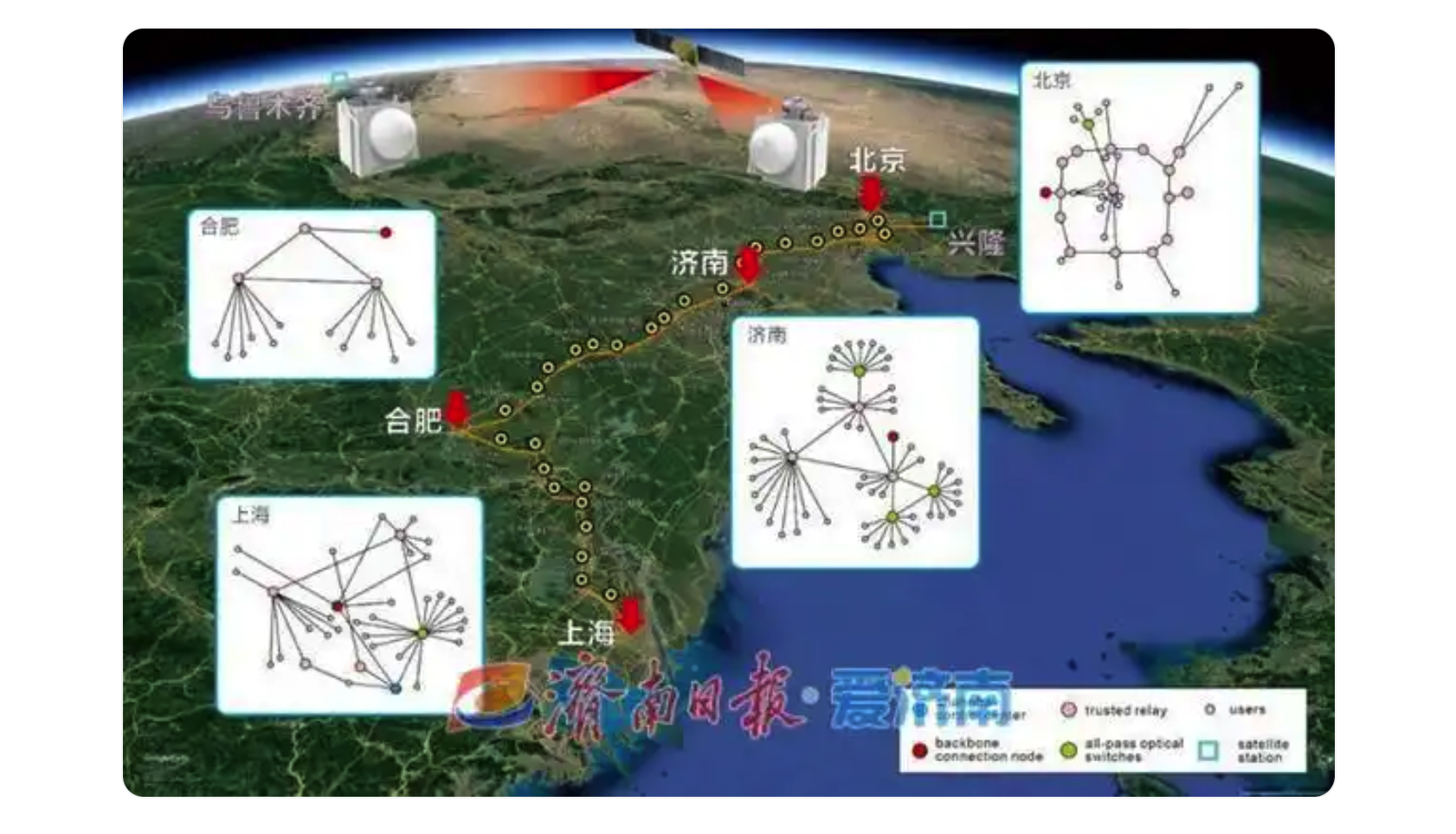 量子通信方面,濟南是量子保密通信“京滬干線”的重要節點城市,建設全球首套小型化量子衛星地面站,串聯“墨子號”“京滬干線”“濟南一號”等重要基礎設施;率先實現電子政務外網認證體系量子密碼增強認證,率先完成國家、省、市、區、街道五級電子政務外網與量子通信網的跨網通信?;诹孔油ㄐ偶夹g的高等級安全通信系統多次為國家級重大活動提供量子安全通信保障。