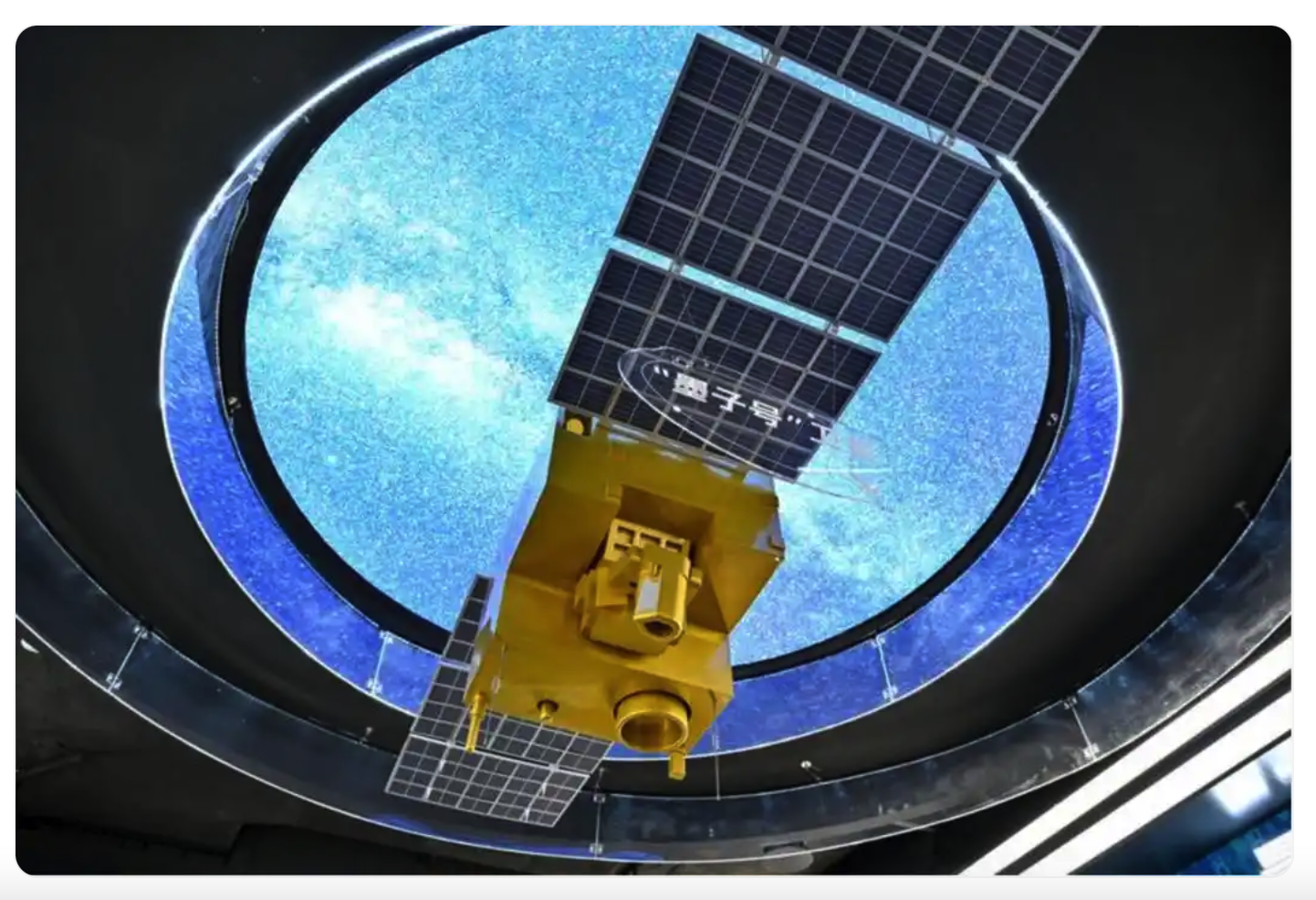 這是在中電信量子信息科技集團有限公司的科技體驗館內拍攝的“墨子號”量子衛(wèi)星模型(7月1日攝)。新華社記者 張鋮 攝