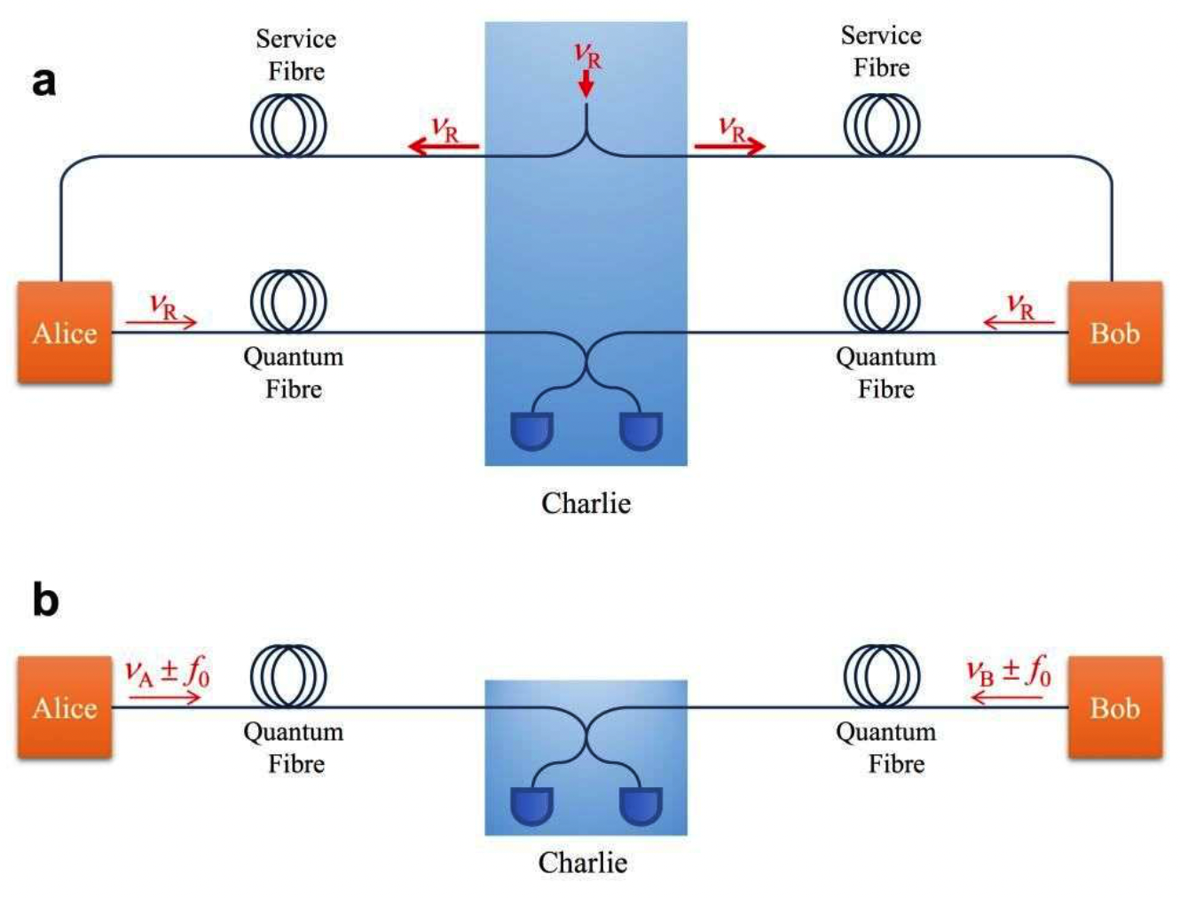北京量子信息科學研究院首席科學家袁之良介紹,雙場架構下量子通信,需要相距遙遠的兩個獨立激光源各自發出“信號”。如果激光源發射的“信號”頻率不同,就會出現傳輸中的“信號”失誤。想要避免“信號”失誤,就需要一個能實現兩端“信號”頻率相同的“工具”:服務光纖。這意味著通信兩端之間還需額外架設“一條路”,這也就構成了由“兩條路”構成的傳統架構。